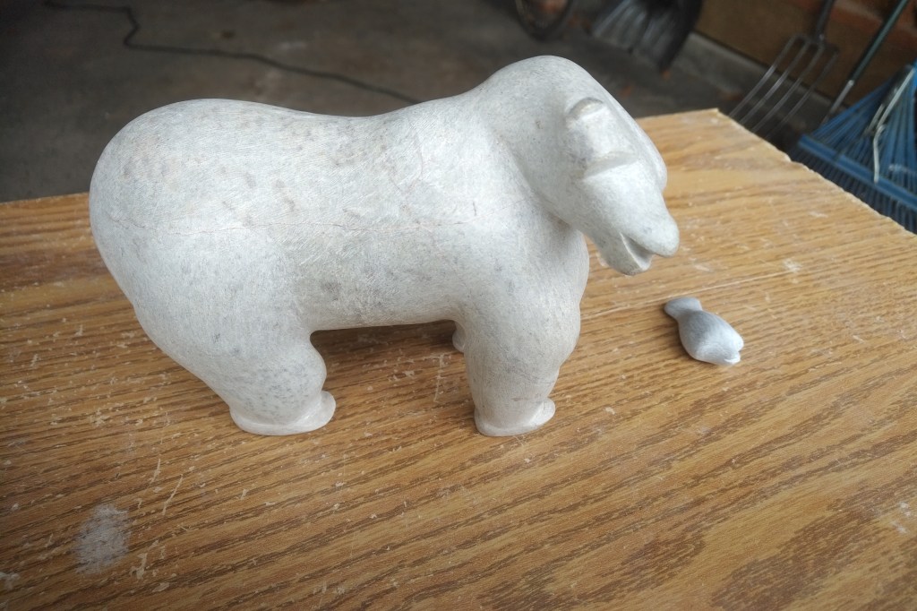 Churchill (bear): a larger bear from Lee Valley stone. Gifted to a friend who named it Churchill,